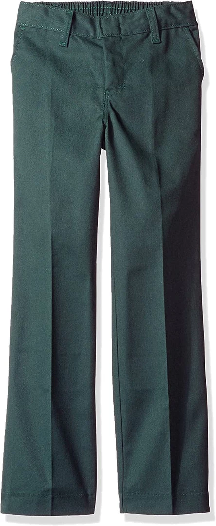 - Flat front with hook & eye closure, zipper, reinforced kneeÂ