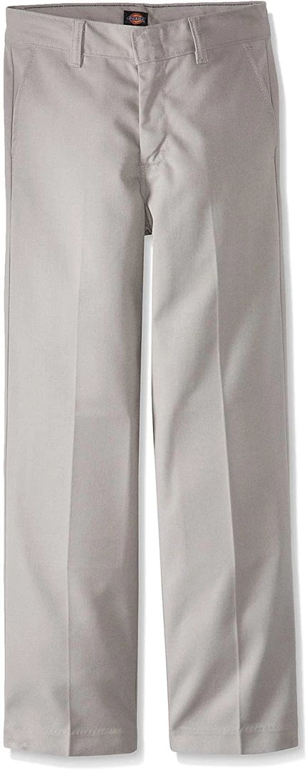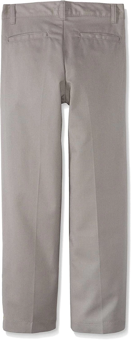 - Flat front with hook & eye closure, zipper, reinforced knee