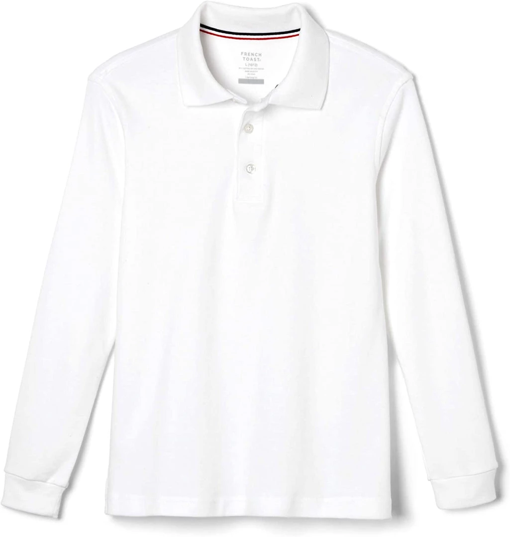 French Toast Boys White Long Sleeve Interlock Polo SA9087