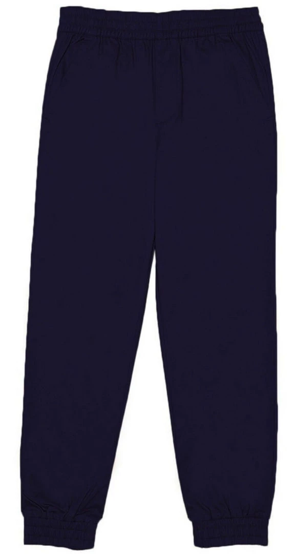 Athletic-inspired jogger pants pull on easily with an elastic waist and functional inside drawstring. Crafted of cotton-blend twill. Snug Fit.