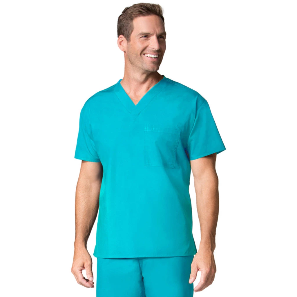 - Unisex fit V-neck top